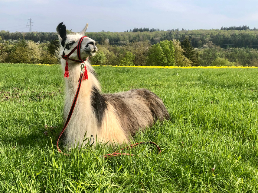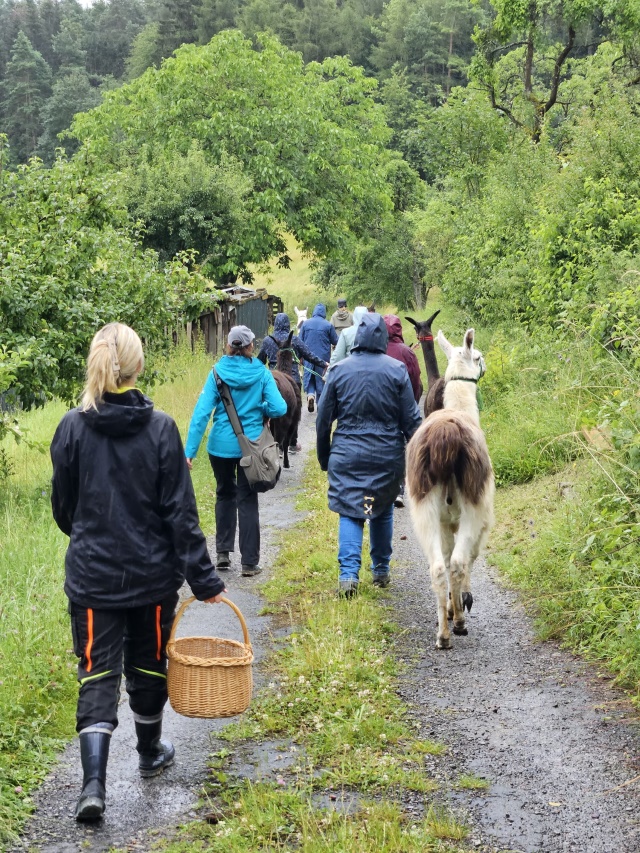 Begrüßt werdet ihr von unseren 7 neugierigen Vierbeinern auf der Weide, die schon ganz gespannt auf euch warten. Nach einer kurzen Vorstellungsrunde starten wir unsere gemütliche Lama- Wildkräuterwanderung über Feld-, Wald- und Wiesenwege in der näheren Umgebung.